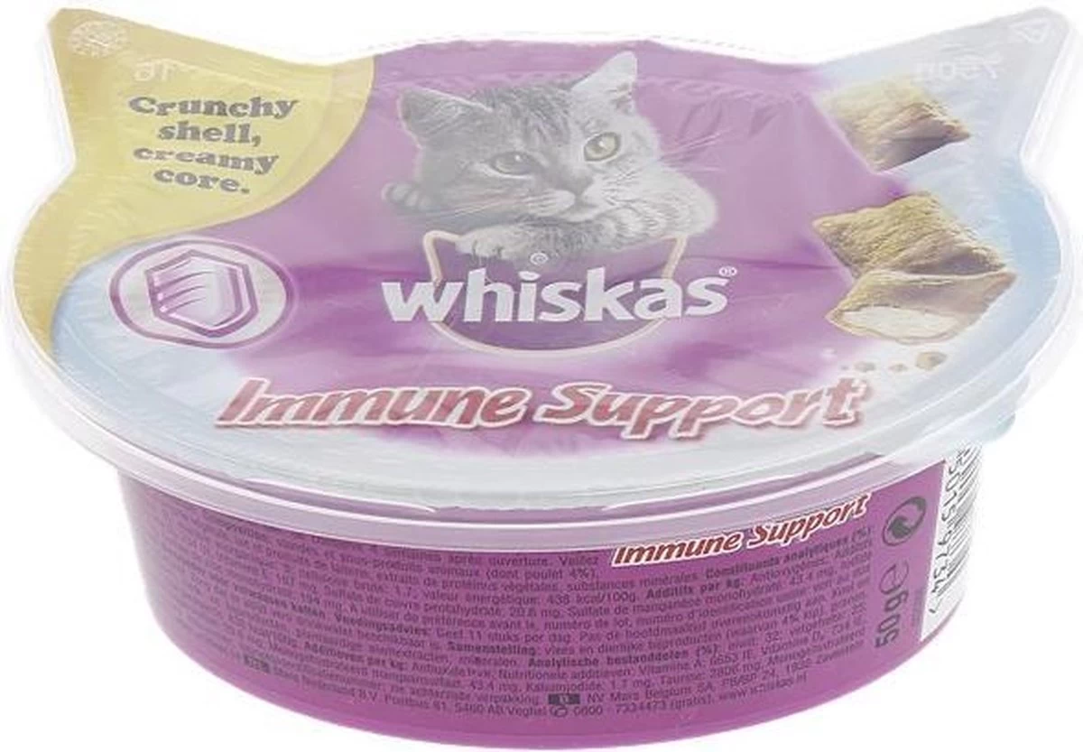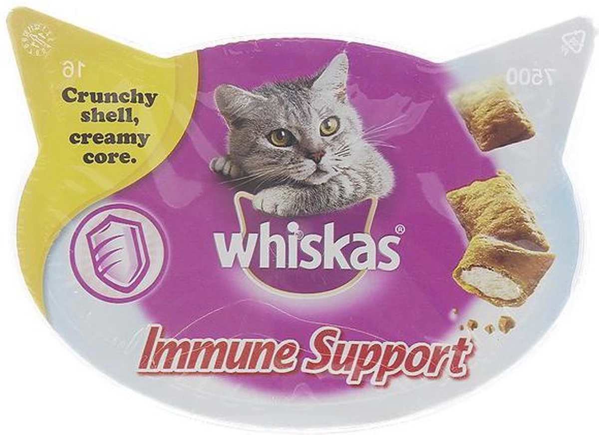 Whiskas Immune Support is een onweerstaanbare kattensnack die je kat gezond houdt.