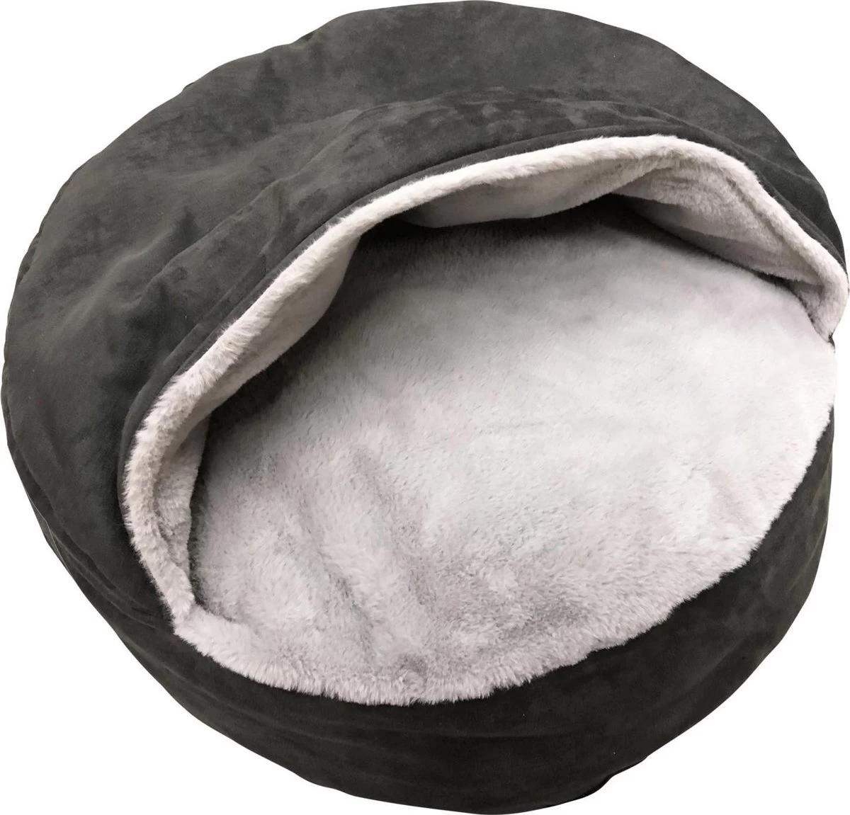 De Hondencave Toto van Adori kan in twee woorden worden omgeschreven: warm en zacht. De Toto is een mand en slaapzak in één. Je hond kan natuurlijk gewoon op de mand gaan liggen en lekker wegdromen. Maar de mand heeft ook een flap waar je hond onder kan kruipen en verschuild in kan rusten. De binnenkant van de mand is dan ook gevoerd met zacht lichtgrijs pluche, de buitenkant is gemaakt van een mooie donkergrijze stof. Al met al een onweerstaanbare mand voor je viervoeter.