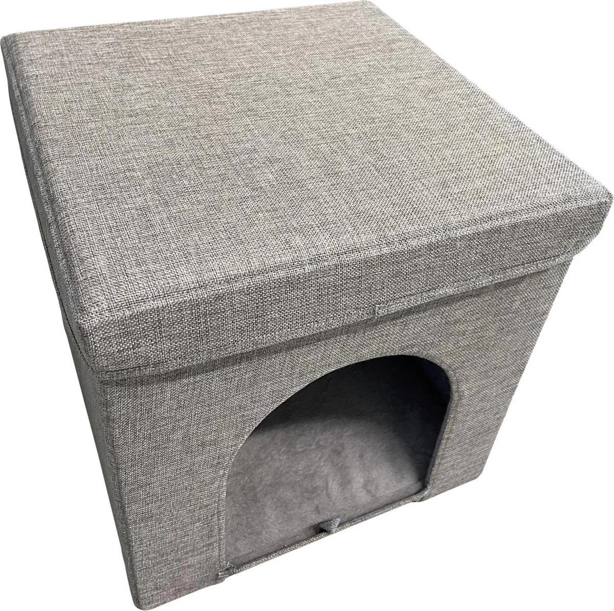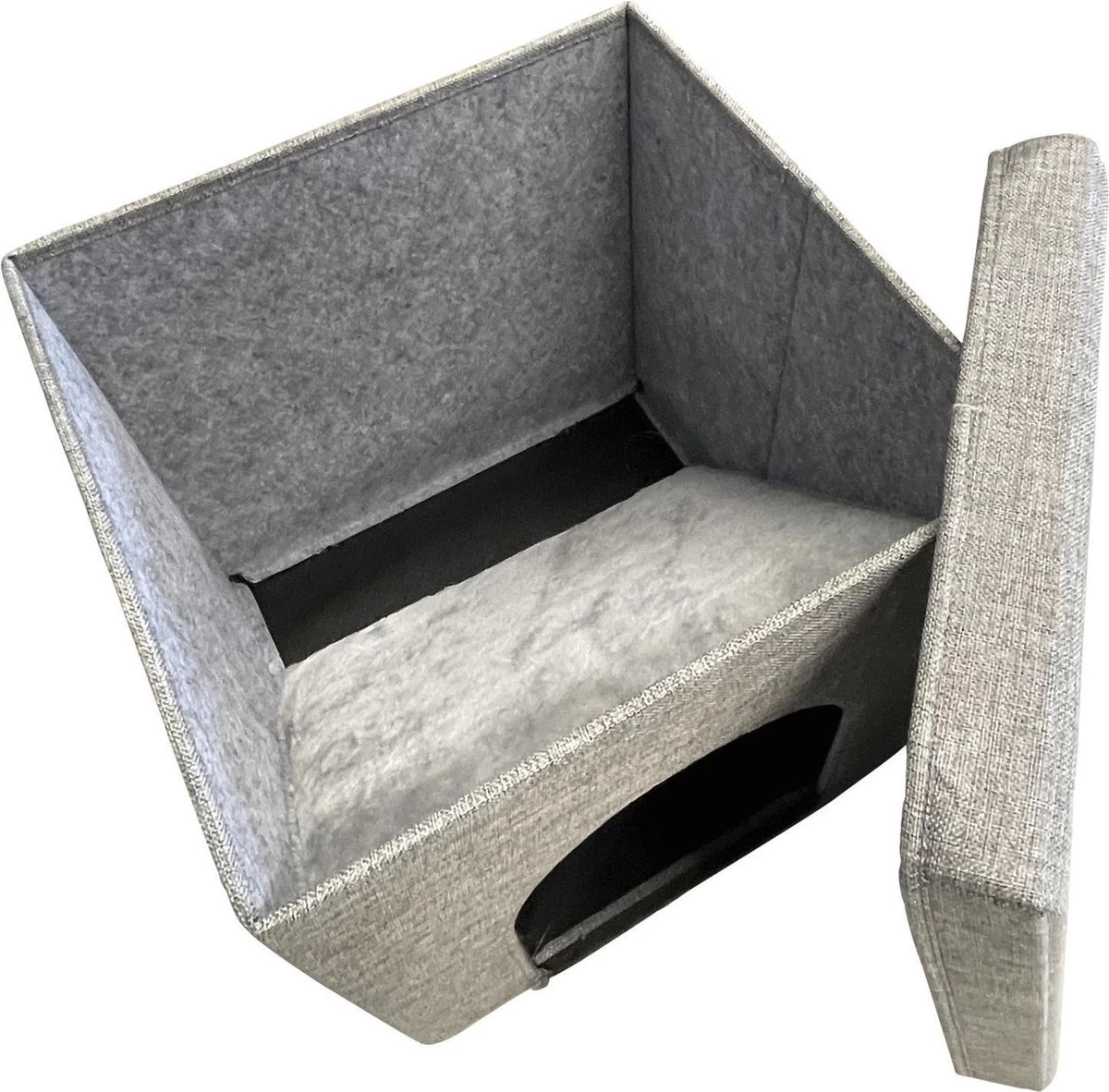 Adori Kattenhuis Met Poef Moon – Kattenmand – 36.5×36.5×36.5 Cm Grijs