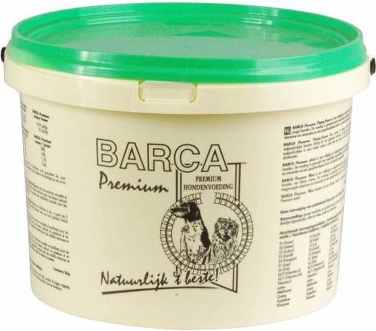 Barca Premium Pup/Junior: Deze voeding is bedoeld voor puppies. Door de specifieke noden van uw puppy, wordt de voeding speciaal uitgebalanceerd met de juiste hoeveelheid vitamines en sporenelementen die noodzakelijk zijn voor een goede spieropbouw en een evenwichtige opbouw van het skelet. Barca Premium Welpenvoer kan vanaf drie weken worden bijgevoerd (droge methode). Ook kan men de welpenbrokjes laten weken zodat het een papje wordt (natte methode). Zorg uiteraard ook hier steeds voor vers drinkwater. Waarom Barca Premium Pup/Junior hondenvoer? – Hoge acceptatie.- Hoge verteerbaarheid.- Weinig en compacte ontlasting.- Enkel natuurlijke ingrediënten.- Geen tarwe gluten. Analyse: Barca Premium Puppy/Junior bevat per kg. voeder; – Ruw Eiwit 27 % – Ruw Vet 16 %- Ruwe celstof 2 % – As 7 %- Vocht 6 % – Calcium 1,2 %- Fosfor 0,9 %- Natrium 0,3 % Vitaminen: – A 25.000 IE – D 1100 IE – E 210 MG Ingredienten: Ontsloten granen – Gedroogd vlees – Dierlijke bijprodukten – Mineralen en vitaminen – Oliën en vetten