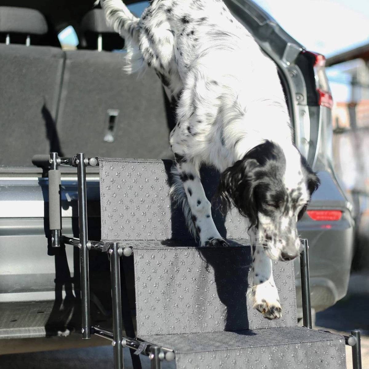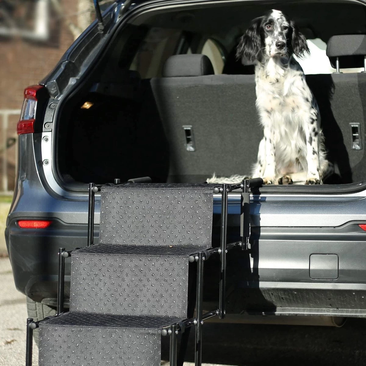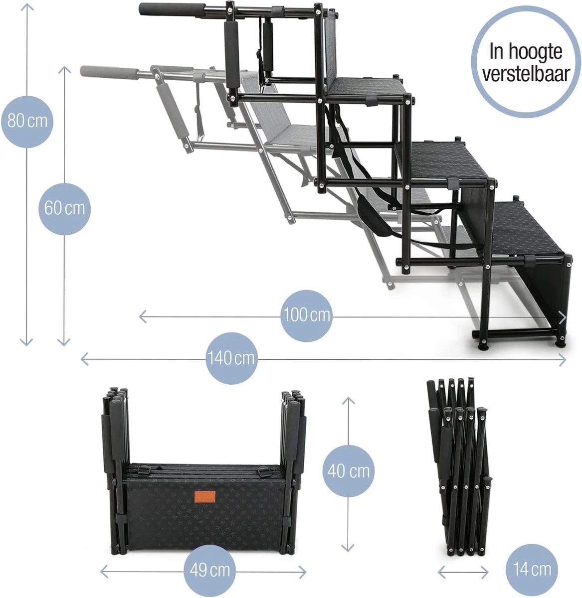 - De vier treden van de hondenladder met antislipbekleding zorgen voor een veilige grip, zelfs met natte poten, en zijn in hoogte verstelbaar