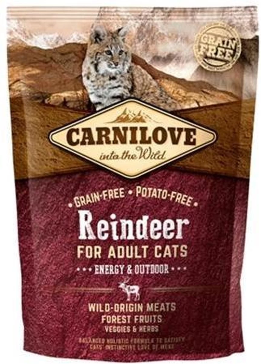 Carnilove Kat Rendier is een complete kattenvoeding voor volwassen katten. De voeding is uitermate geschikt voor de buitenkat en voor katten die een beetje extra energie nodig hebben. De voeding is graanvrij & aardappelvrij.