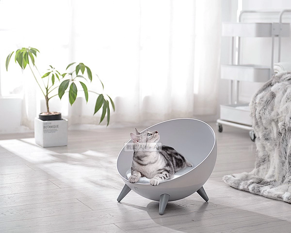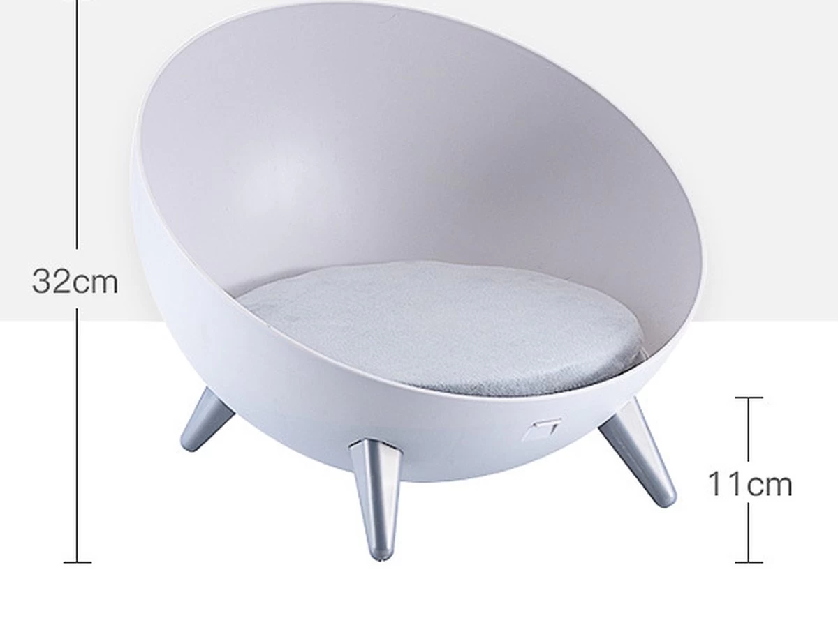 Katten en kitten let op! Hier is de ultimatieve designer-stoel. De ronde ligkom is uit wit transparant acryl gemaakt en er ligt een heerlijk kussen in, die bij de levering is inbegrepen. Deze verhoogde zitplaats wordt beslist direct de nieuwe lievelingsplaats van uw huisdier.