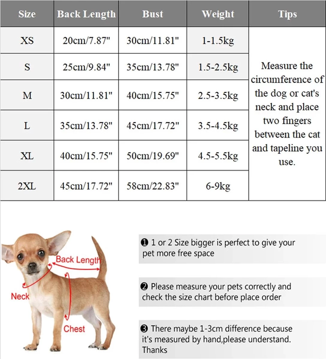 | Halsmaat | 25 cm |