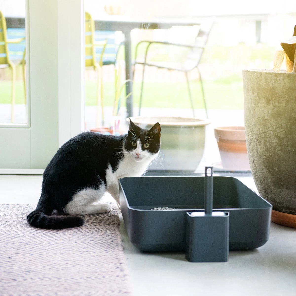 Het Poh kattentoilet is gemaakt van hoogwaardig sterk kunststof dat gemakkelijk schoon te maken is en stevig aanvoelt. Schoonmaken gaat makkelijk met het handige meegeleverde schepje dat mooi past in het daarbij behorende containertje. Dankzij het stijlvolle ontwerp hoeft de kattenbak niet verstopt te worden en kan hij overal geplaatst worden.