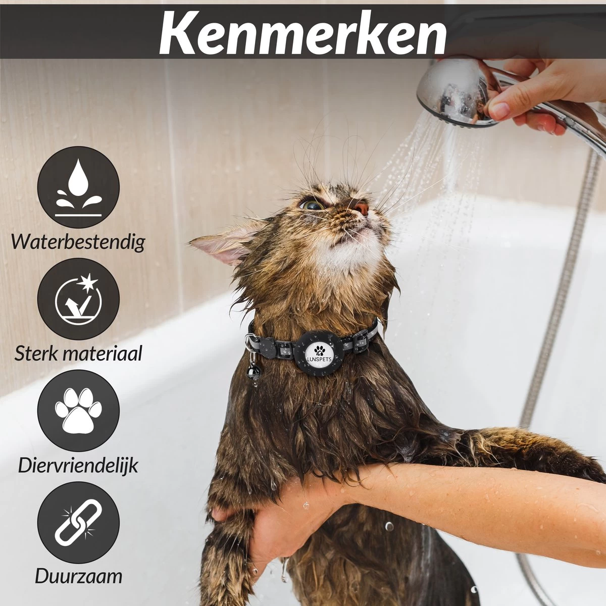 De kattenhalsband van Luns wordt meegeleverd met een Airtag houder, hierin kunt u uw airtag inplaatsen en uw huisdier altijd blijven tracken. De houder is speciaal ontworpen voor kleine halsbanden voor dieren, deze is dan ook waterdicht, schokbestendig, intrekbaar en blijft buiten bereik van uw huisdier.