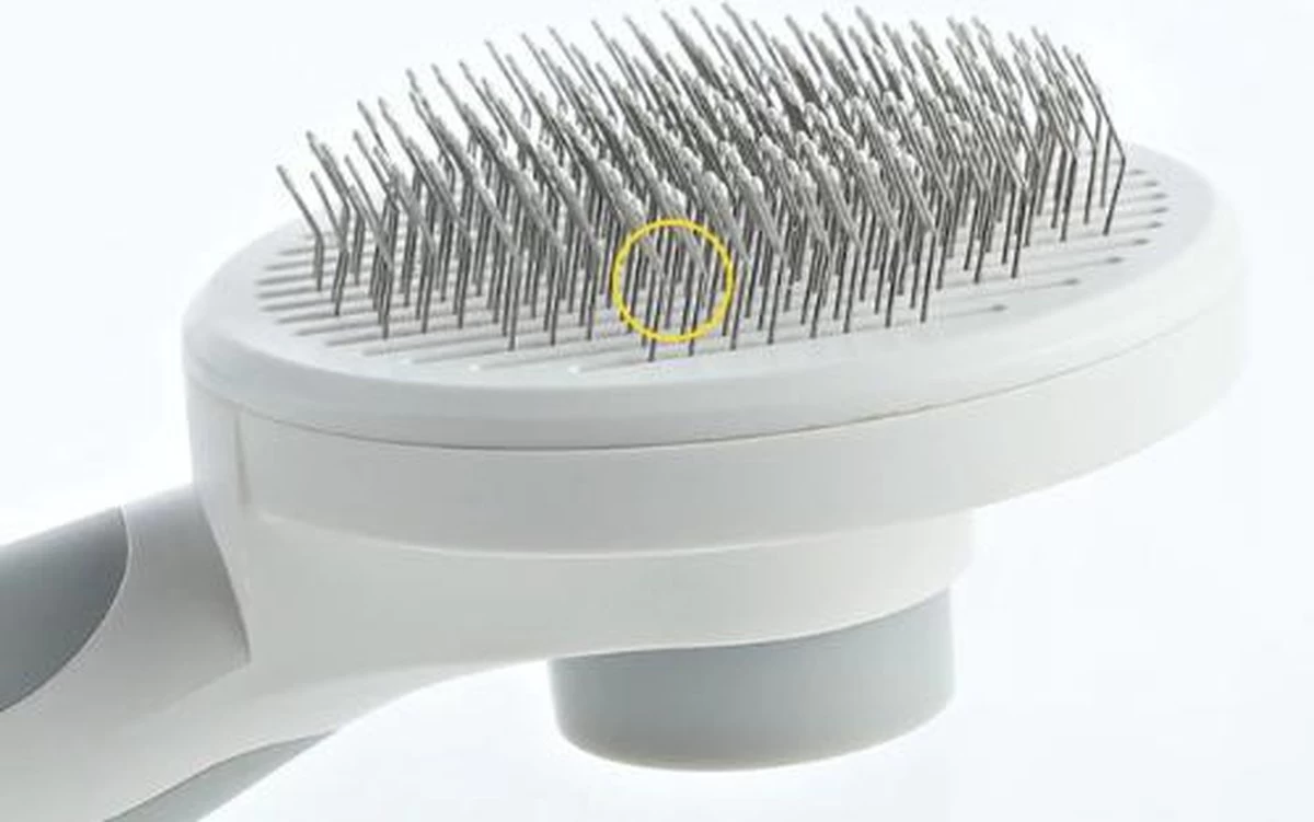 Borstel voor huisdieren hond en kat met als meerwaarde dat je slechts met één duw op de knop de haren uit de borstel kan verwijderen.