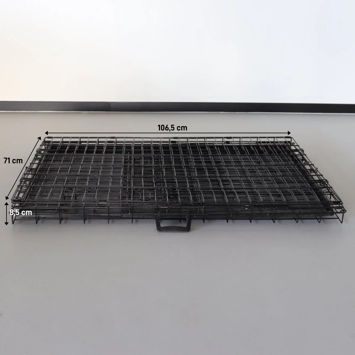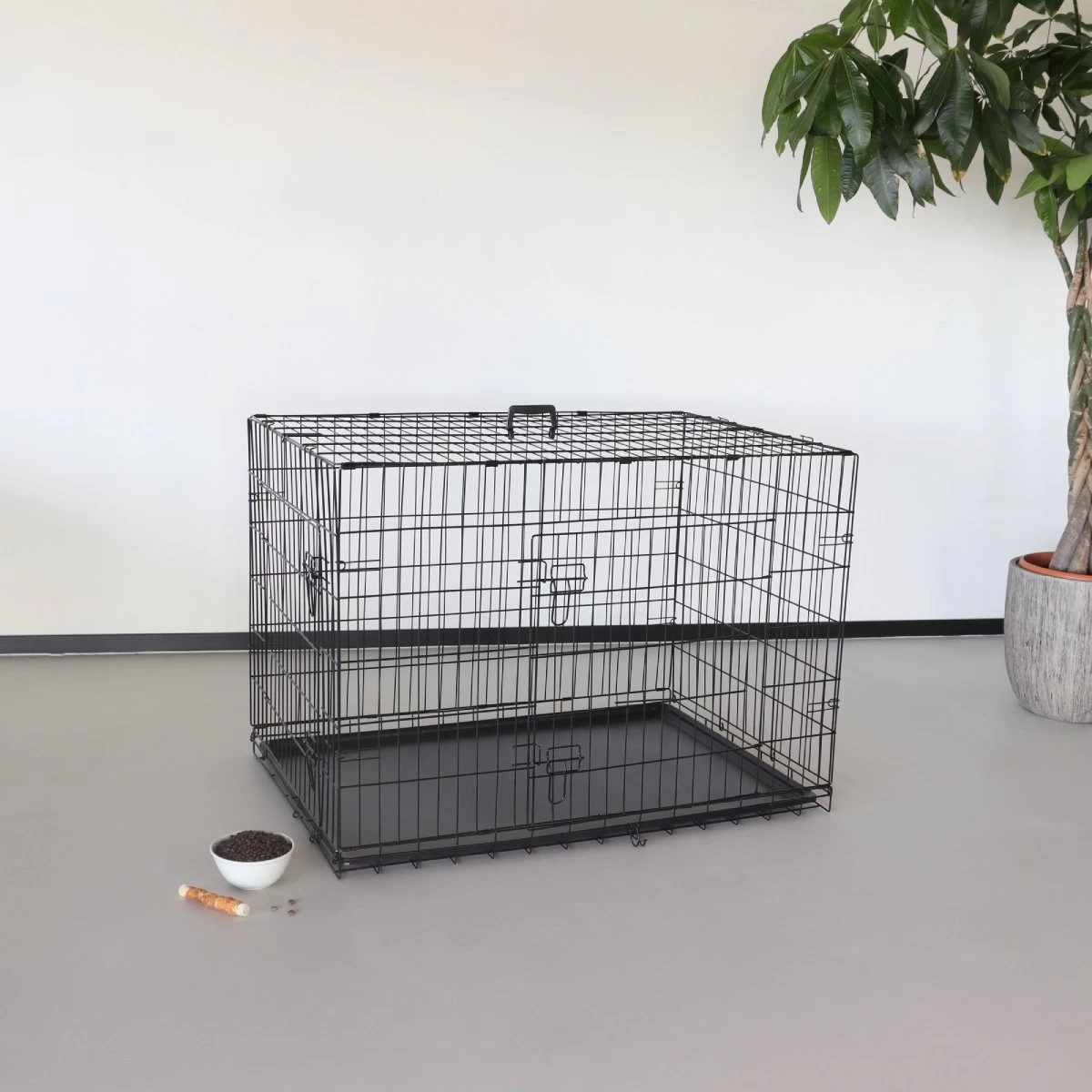 Deze hondenbench is gemaakt van metaal en heeft een stevige opvangplaat. Deze is uitneembaar, hierdoor kun je gemakkelijk ongelukjes opruimen. De bench is super sterk, hierdoor is deze voor zowel pups als volwassen honden geschikt. Zorg er voor dat de hond of elk ander dier altijd genoeg ruimte heeft om te bewegen!