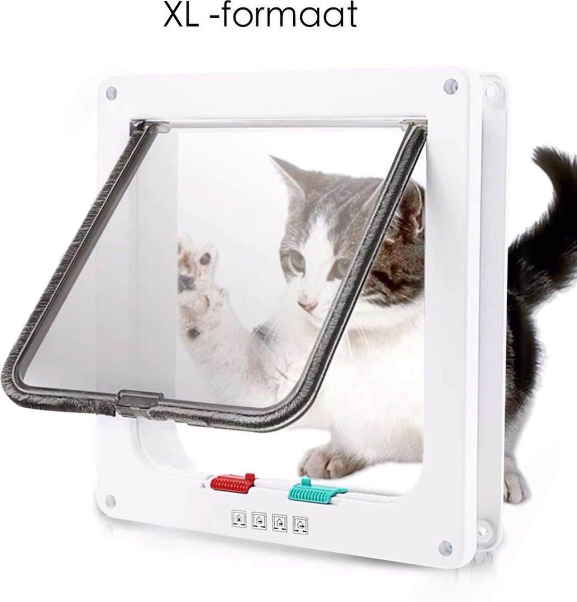 Het kattenluik beschikt over 4 vergendelingsstanden. Zo kun jij altijd makkelijk bepalen wanneer je kat naar binnen of naar buiten mag. En weet je dus zeker wanneer je kat binnen is en hoef je niet te gaan zoeken naar je kat voordat je naar bed gaat. Je kunt kiezen tussen:alleen naar binnen, alleen naar buiten, volledig dicht of volledig open.