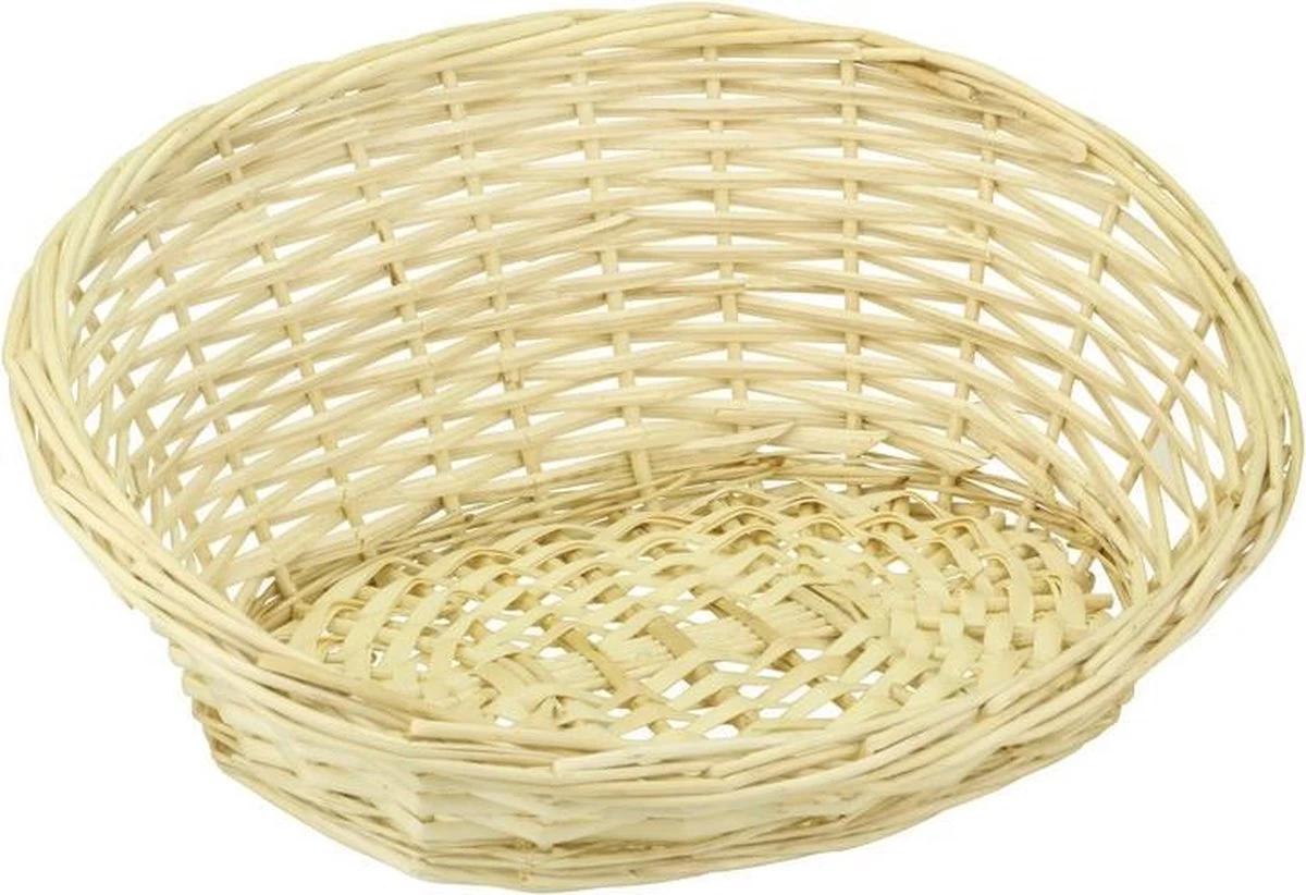 Ovale rieten/bamboe mand met hoge rug 39 x 23 x 15 cm. Deze ovale bamboe mand heeft een lichte kleur. Het mandje is geschikt voor een kleine kitten, u hoeft er alleen nog maar een kussentje/handdoek in te leggen! Afmeting: 39 x 23 x 15 cm. Materiaal: Bamboe/riet. Kitten/katten mandje – Huisdieren mand – Rieten mandje ovaal.