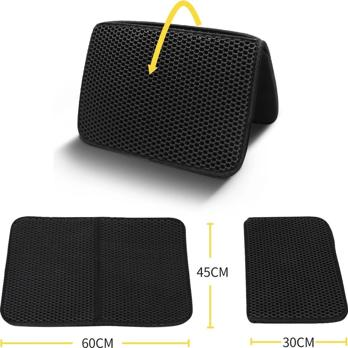 Nobleza Kattenbakmat – Kattenmat Met Filter – Kattenbak Accessoires – Grit Opvanger – 3 Lagen – Waterdicht – 60×45 Cm – Opvouwbaar – Zwart