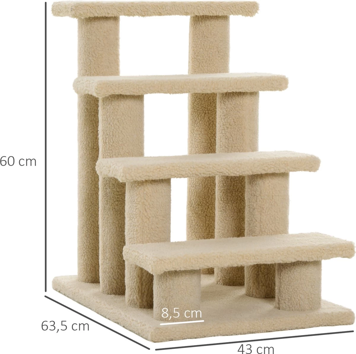 PawHut Dierentrap, Kattentrap, Hondentrap, Trap Voor Katten En Honden, 4 Treden, Beige, 63,5 X 43 X 60 Cm D30-006