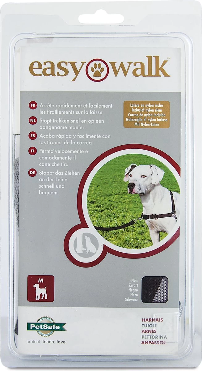 Het Easy Walk®-tuigje is ontworpen om honden voorzichtig te ontmoedigen om te trekken als ze aan de lijn lopen. In tegenstelling tot traditionele halsbanden veroorzaakt het Easy Walk-tuigje geen neiging tot hoesten, kokhalzen of verstikking omdat de borstband laag over het borstbeen rust. De unieke bevestiging voor de lijn aan de voorkant stopt het trekken door de hond naar de zijkant te sturen en zijn aandacht op zijn baas te richten. Met de snel sluitbare gespen is het tuigje eenvoudig aan te doen en te verwijderen, terwijl vier verstelpunten de hond maximaal comfort bieden. Beschikbaar in de maten S/M, M, M/L, L en XL.