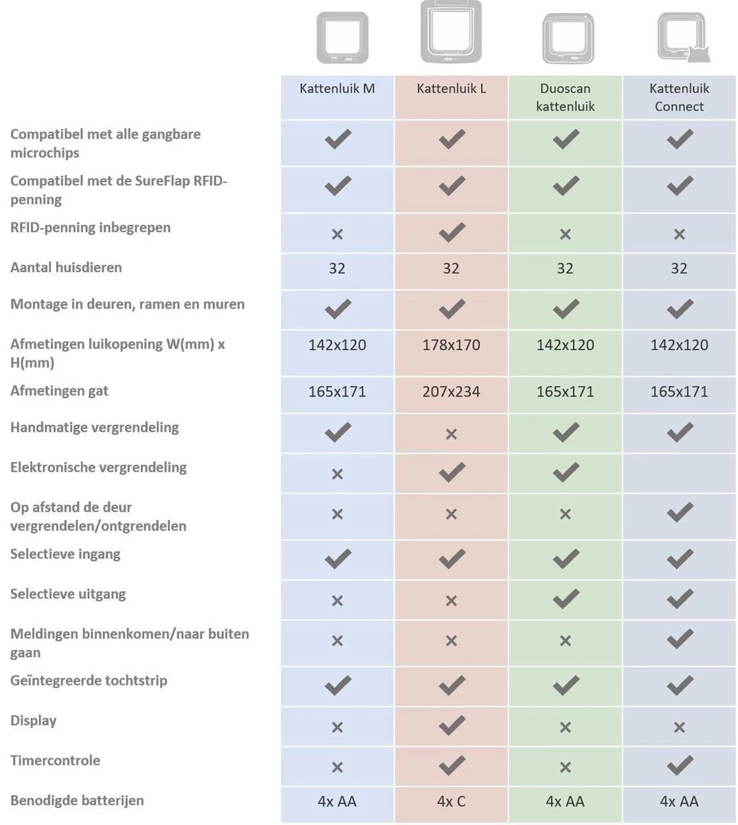 Kattenluik L heeft als extra functionaliteiten de mogelijkheid om tijdsranges in te stellen daarbij is de doorgang wat groter.