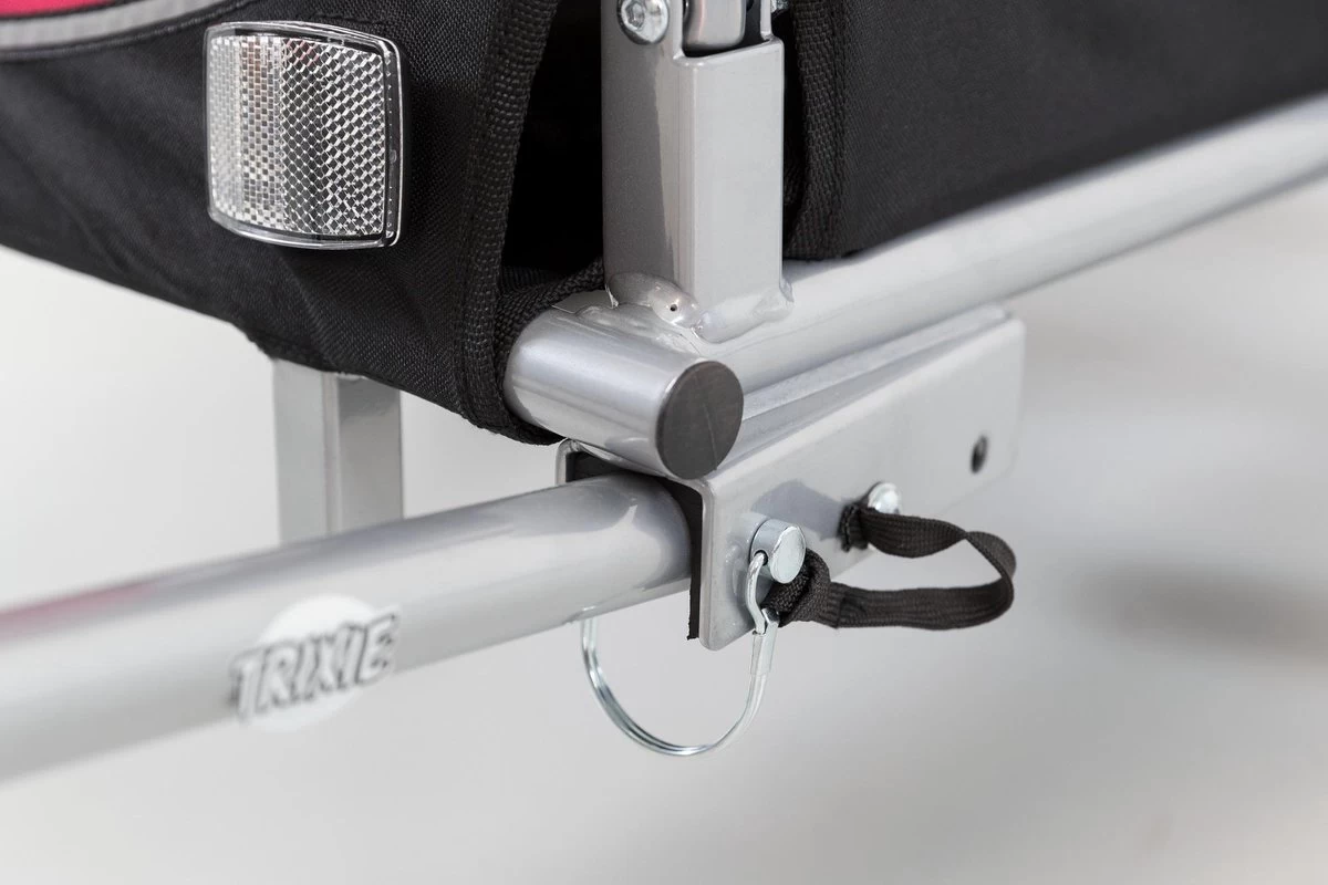 Met deze hondenfietskar van Trixie van 75 x 63 x 68 cm in zwart en rood neemt u uw hond mee op elke reis met de fiets!
