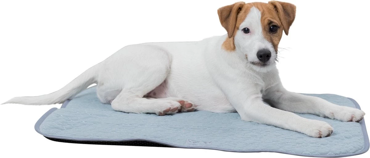 De Trixie Junior Ligmat Fresh Lichtblauw 60 x 50 cm is een ligmat voor de hond met lichte koelende werking en slipvaste onderkant, zeer geschikt voor jonge en gevoelige dieren. Deze fijne ligmat is naast comfortabel ook heerlijk koel voor in de zomer. De mat is gemaakt van een dunne stof met een luchtdoorlatende vulling, die warmte absorberen en zo een lichte koelfunctie hebben. De ligmat heeft een polyamide/polyester hoes van doorgestikt microvezel en een slipvaste onderkant die schuiven voorkomt als de hond gaat liggen of opstaat. Bijzonder geschikt voor jonge en gevoelige dieren!