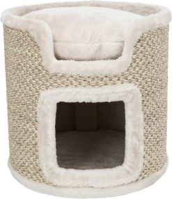 De Trixie Krabton Ria Krabpaal Lichtgrijs/Natuur van 39 x 37,5 x 39 cm is een ronde krabton voor de kat met sisal krabvlakken, schuilplaats, kussen en gevoerde ligplateaus. Een heerlijke eigen plek voor jouw kat hoeft niet te veel ruimte in te nemen, dat bewijst deze leuke krabton van Trixie. Krabton Ria is een compacte krabpaal voor de kat met twee verdiepingen. De ligplateaus zijn gevoerd voor meer comfort en het bijgeleverde wendbare kussen zorgt ervoor dat jouw kat heerlijk zacht kan wegdromen. De schuilplaats onderop is bekleed met lekker zacht pluche en fleece en aan de buitenkant is de ton bekleed met sisal, om jouw kat genoeg krabmogelijkheden te bieden. Krabben is een natuurlijke behoefte voor de kat, dus zorgt altijd voor voldoende mogelijkheden om te voorkomen dat jouw kat aan het meubilair begint!