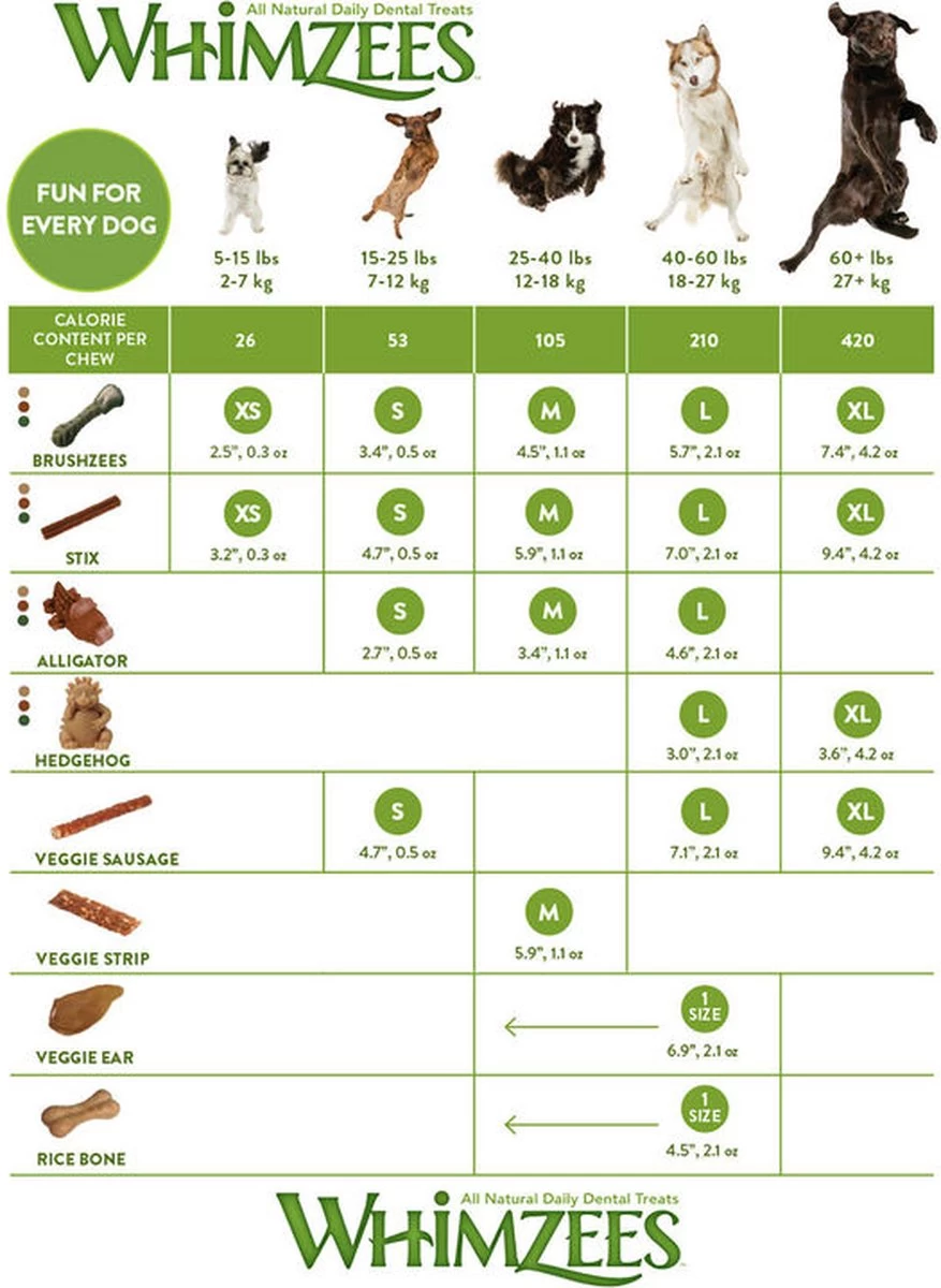 Whimzees kauwsnacks zijn niet alleen heel erg lekker, maar ook heel erg goed voor de gezondheid van je hond(en). De snacks zijn zeer licht verteerbaar, glutenvrij en gemaakt van 100% natuurlijke ingrediënten. Zo kunnen zelfs de meest gevoelige honden genieten van een heerlijk tussendoortje op zijn tijd. Daarnaast zorgen de ingrediënten en de structuur van deze snacks voor een schoon en gezond gebit, dat is fijn voor hond en baas!
