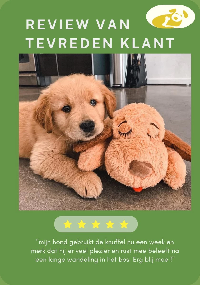 Laat je puppy volledig tot rust komen met de hondenknuffel van Woefie! Voelt je puppy zich weleens onrustig? Dan is de woefie hondenknuffel het ideale maatje waardoor je puppy zich weer prettig voelt. Honden zijn van nature sterk verbonden met hun moeder, wanneer hij zijn moeder verlaat kan het gemis van intimiteit uiten in vormen van angst. Binnen in de knuffel zit een kloppend hartje met een levensechte hartslag waardoor je puppy zich op zijn gemak voelt. Bij de bestelling zal je een handleiding ontvangen waar van A tot Z verteld word hoe je de knuffel het best kan gebruiken. Met de Woefie hondenknuffel heeft jouw puppy een maatje voor het leven!