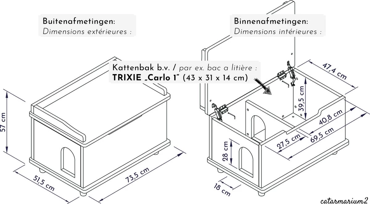 WONDERMAKE® Grote Kattenkast Houten Voor Kattenbak-box Kattentoilet, XL-kattenbak Dressoir Kastje, Designer Kattenhuis Met Kattenhol Kattenmand, Kasten Kast Voor Badkamer, 73,5 X 51,5 X 57 Cm, Wit
